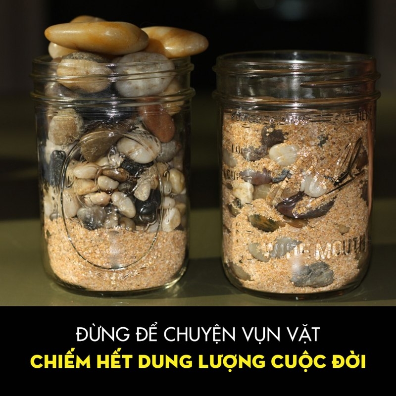 Bài học của chiếc bình thật rõ ràng: Nếu bạn để cho cát sỏi chiếm hết dung lượng cuộc đời, bạn sẽ không bao giờ có chỗ cho những tảng đá lớn. Nếu bạn dành hết thời gian và tâm trí cho những chuyện vụn vặt, bạn sẽ không còn sức lực và không gian cho những gì thực sự quan trọng.