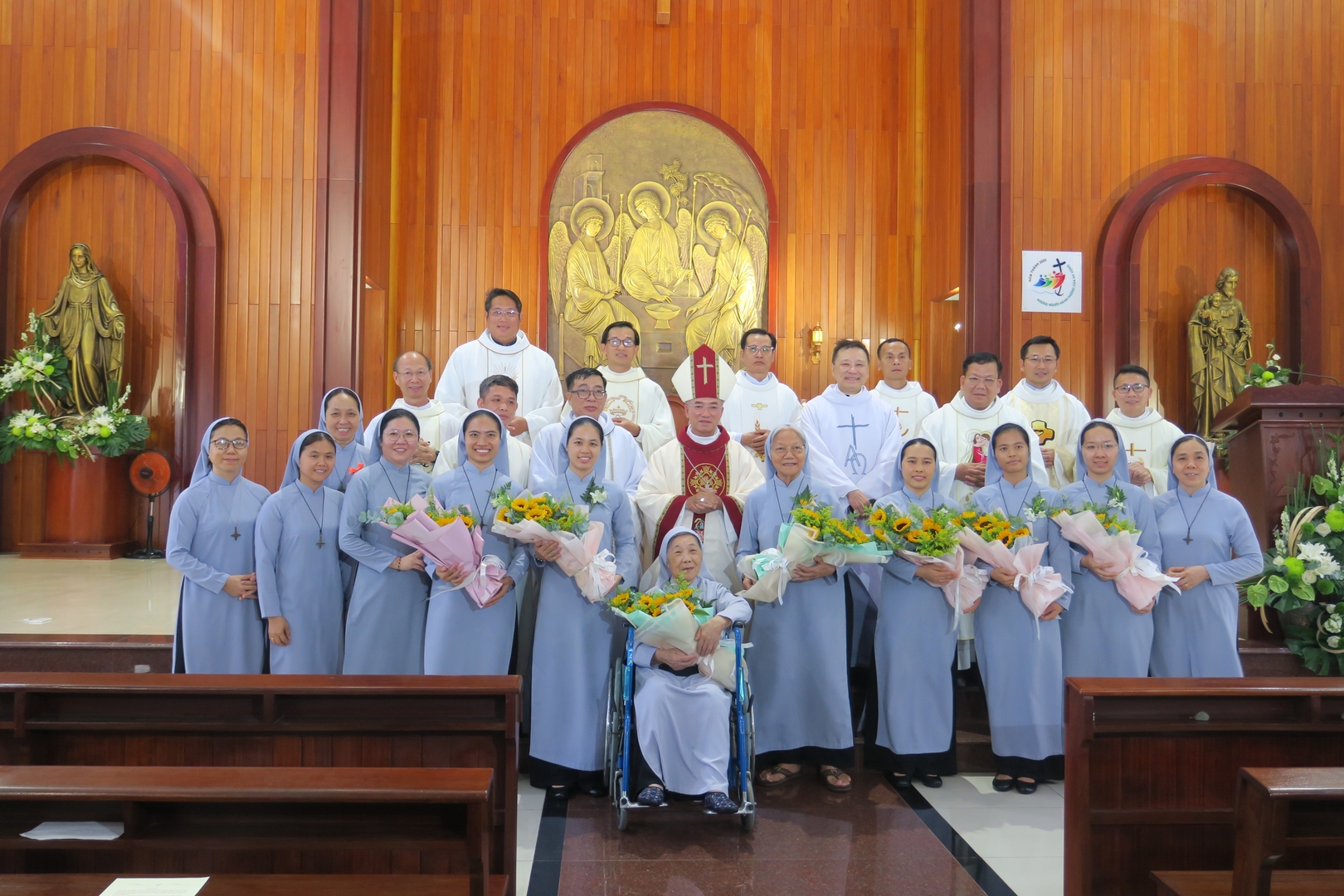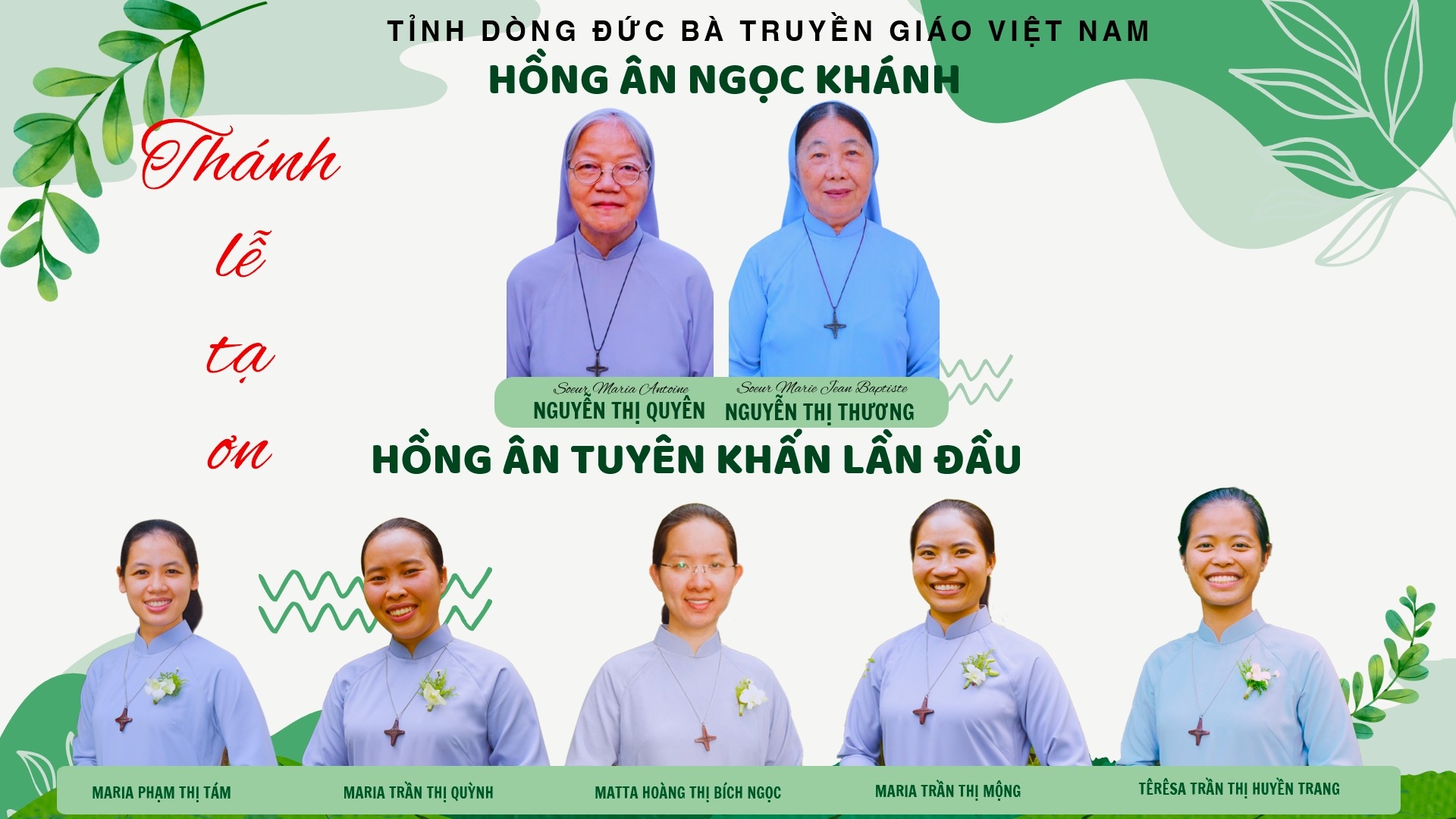 Sáng ngày 15/08/2025 cộng đoàn Đức Bà Truyền Giáo Thủ Đức rộn ràng hân hoan trong ngày lễ mừng Đức Mẹ Lên Trời, vì có hai sơ mừng hồng ân ngọc khánh khấn dòng là: Sơ Marie Antoine Nguyễn Thị Quyên và Sơ Marie Jean Baptiste Nguyễn Thị Thương. Đồng thời, có năm Sơ tuyên khấn lần đầu trong Dòng Đức Bà Truyền Giáo là các em:
