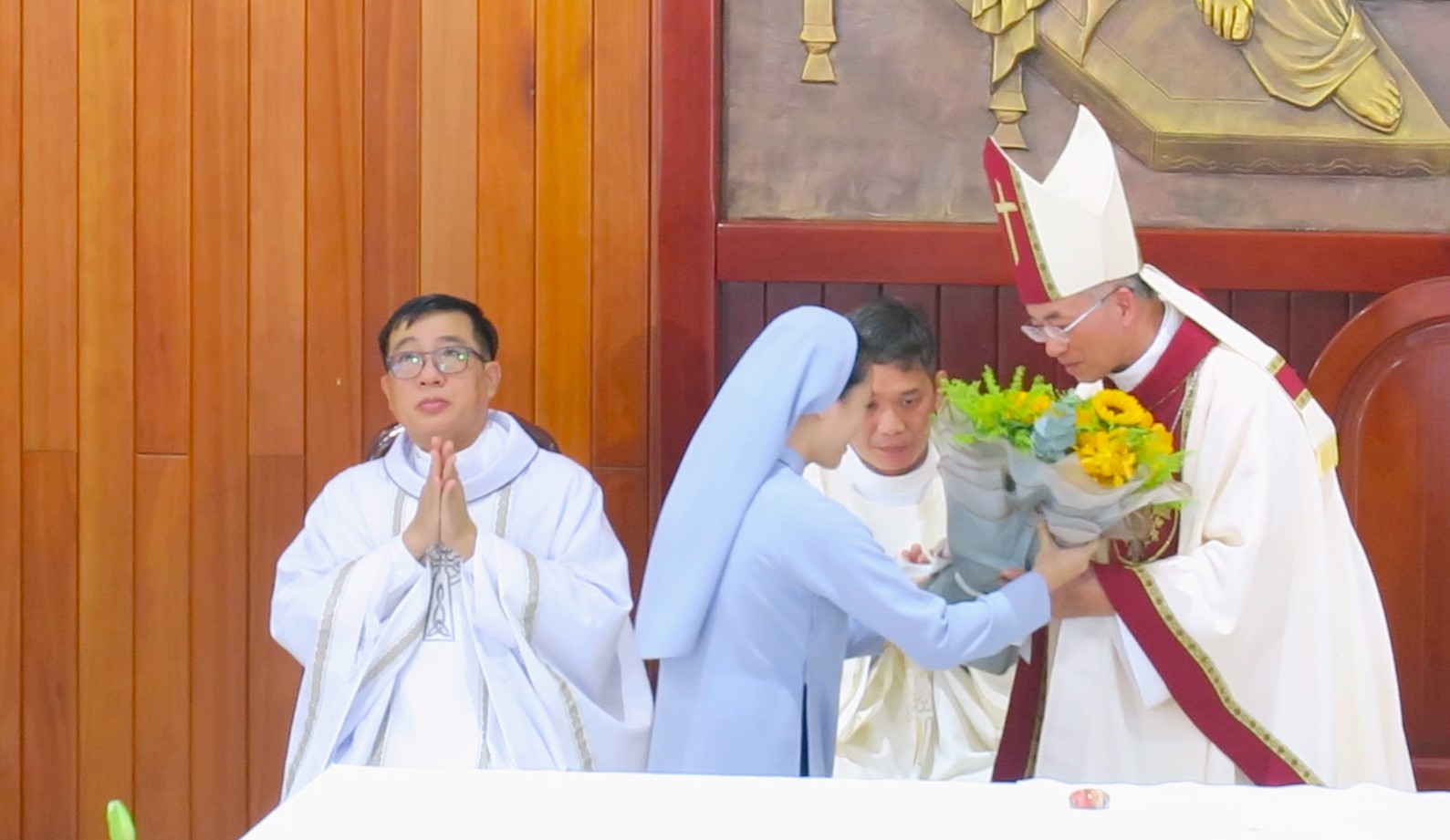 Sau đó, hai sơ cao niên tiến lên lặp lại lời tuyên khấn, mà các sơ đã tuyên xưng cách đây 60 năm, với giọng run rẩy vì tuổi cao và xúc động là minh chứng cho sự trung tín của các sơ trong Dòng Đức Bà Truyền Giáo.
