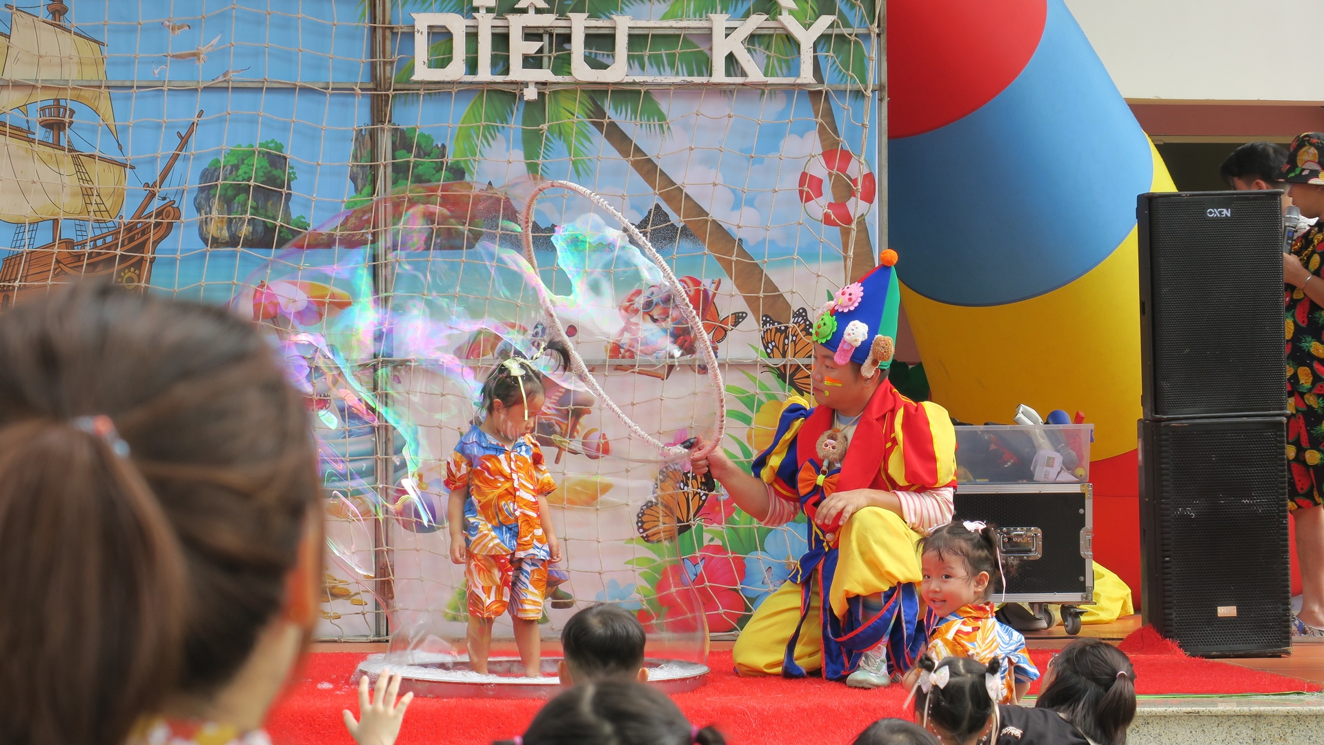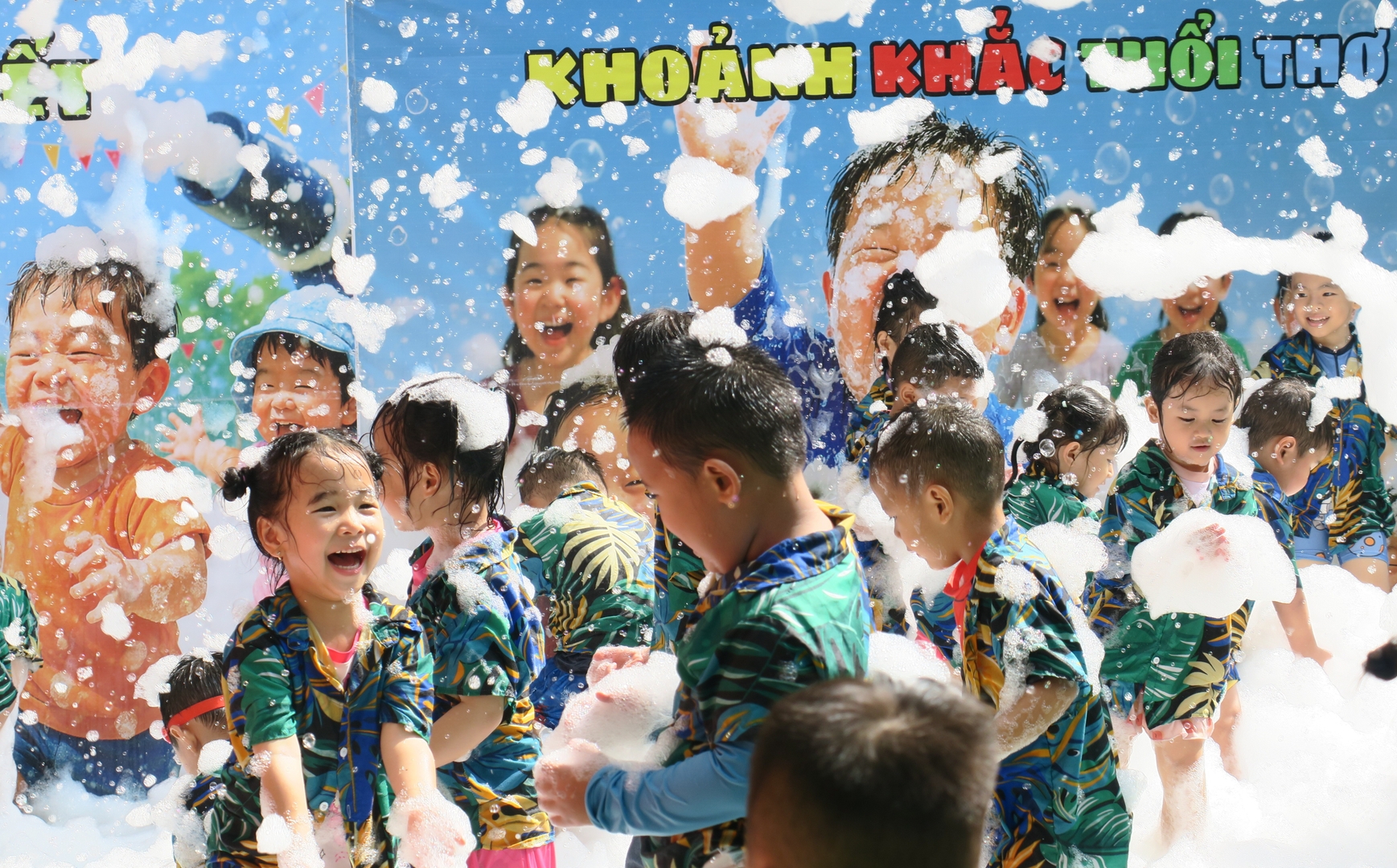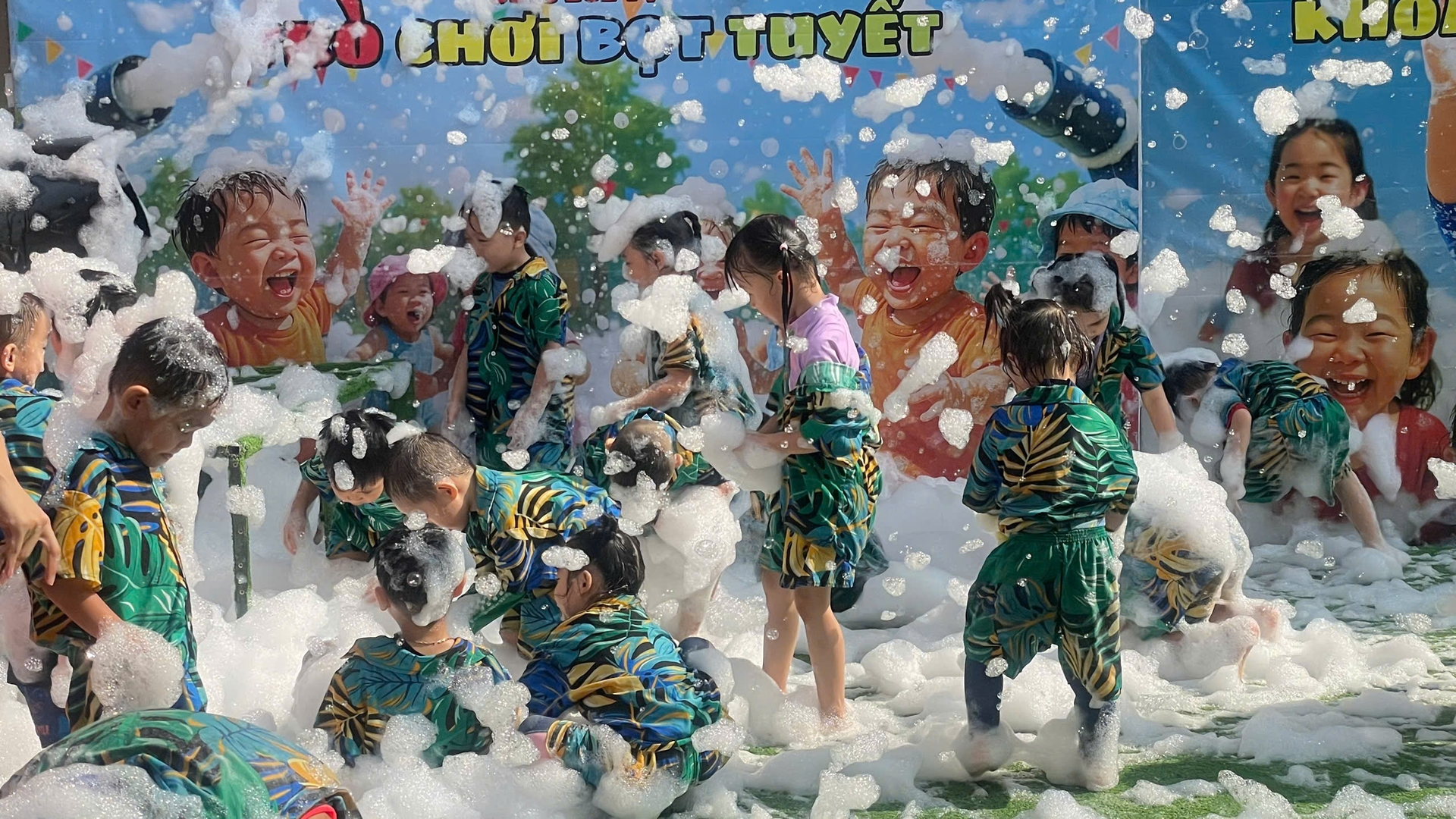 Trước khi bước vào lễ hội, các bạn nhỏ được xem màn trình diễn ảo thuât với bong bóng xà phòng. Các bé đã vỡ òa thích thú khi bước vào “ngôi nhà bong bóng” khổng lồ của chú hề ảo thuật. Những quả cầu xà phòng lung linh dưới nắng, phản chiếu những nụ cười trong veo. Các bé xúng xính nắm tay cô đi “check-in” khắp các nẻo đường rực rỡ: từ hồ Bạch Tuộc, hồ Hàm Cá Mập, hồ Cây Nấm đến khu tắm mưa, bọt tuyết trắng xóa.