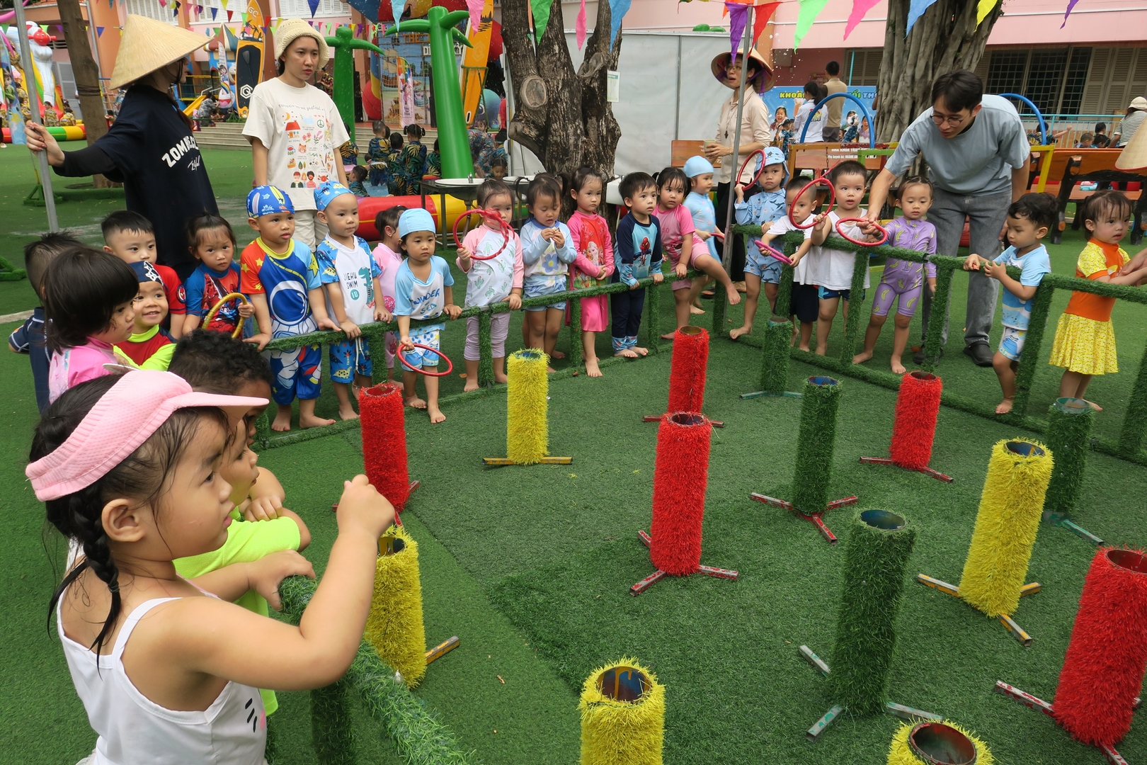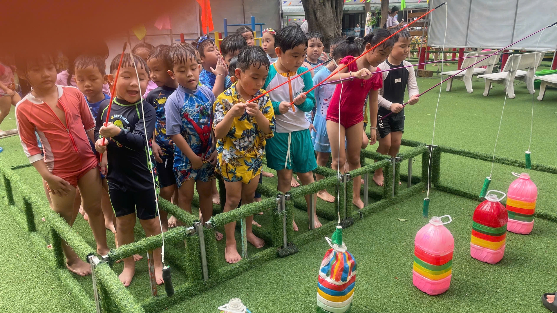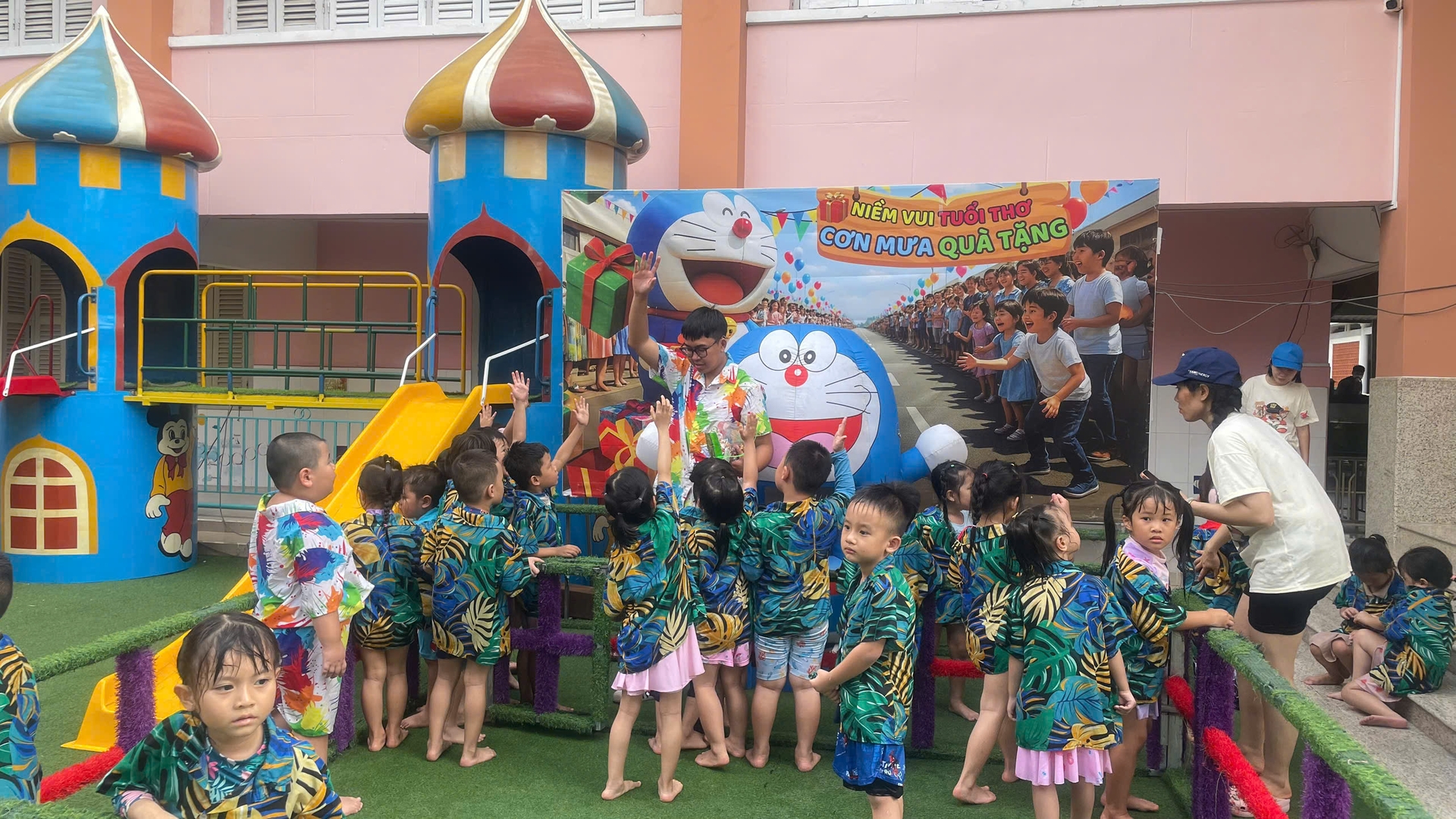 Giờ ngủ trưa thức dậy, thấy những lâu đài phao đã rời đi, có bé khẽ hỏi: "Cô ơi, sao mình được chơi ít vậy cô?". Câu hỏi ngây thơ ấy khiến lòng người lớn bỗng chùng xuống vì thương mến.