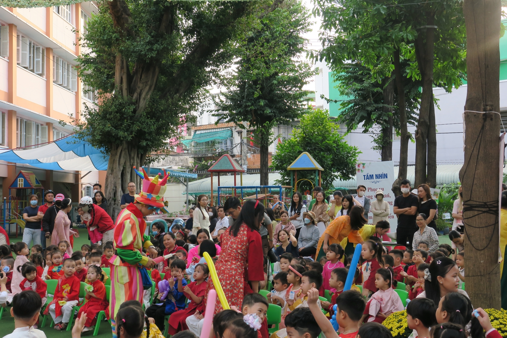Một điểm nhấn nhân văn của chương trình là phần chúc mừng sinh nhật cho các bé có ngày sinh trong tháng 2. Được bước lên sân khấu nhận quà trong tiếng vỗ tay của thầy cô và bạn bè, gương mặt bé nào cũng lấp lánh niềm hạnh phúc.