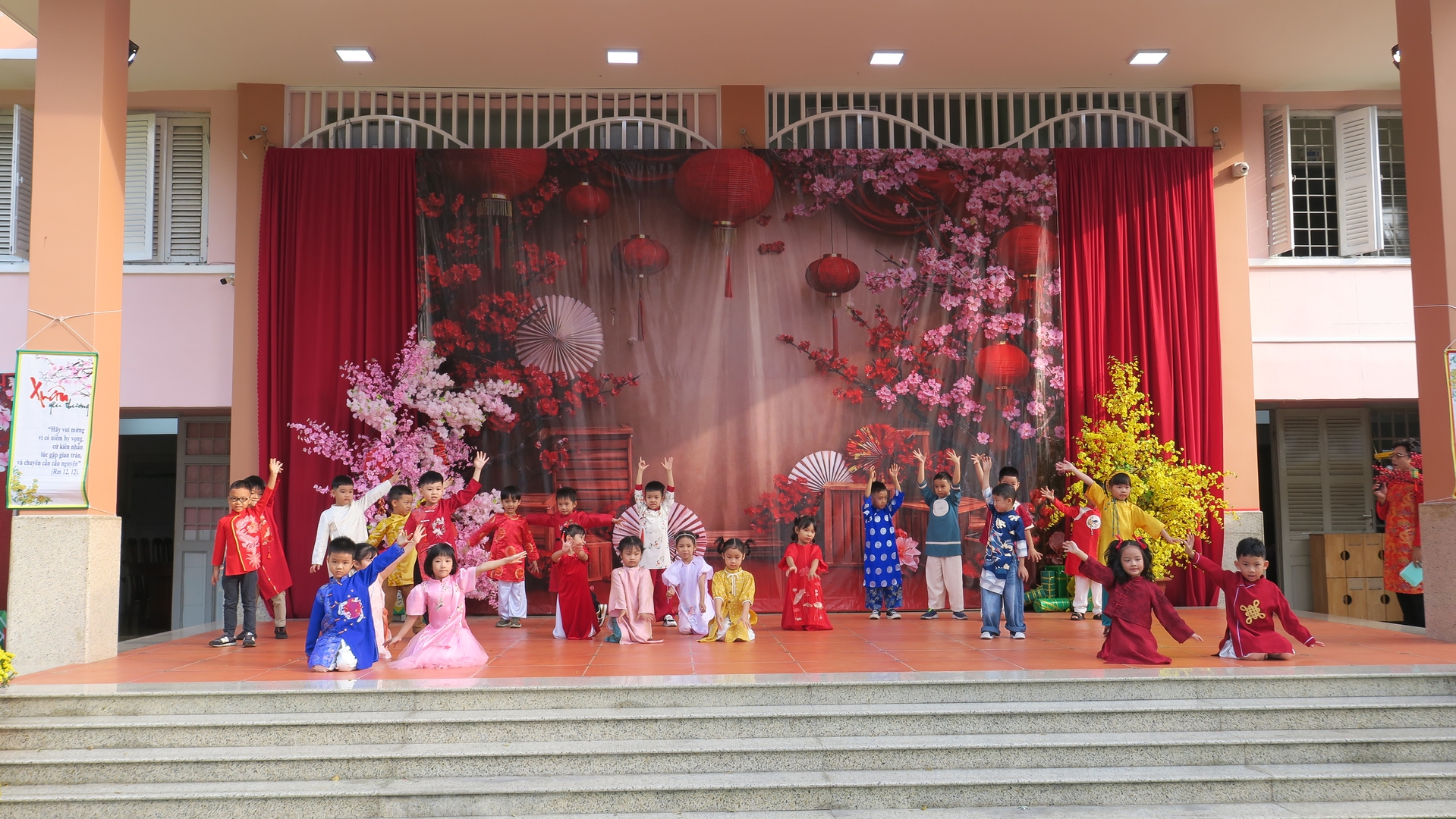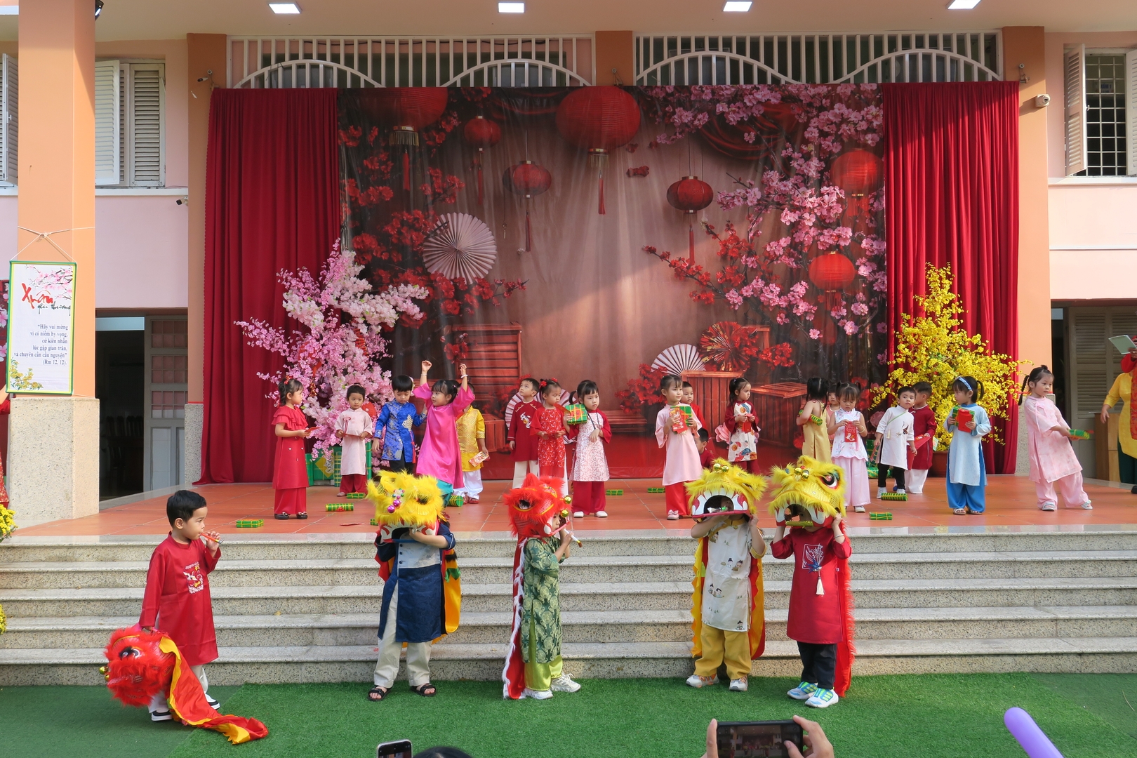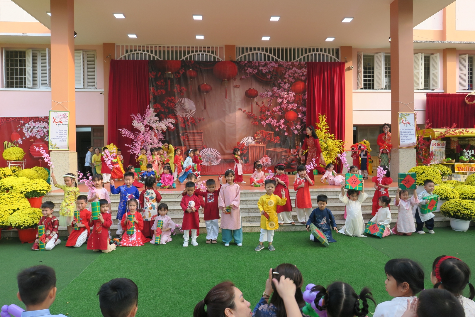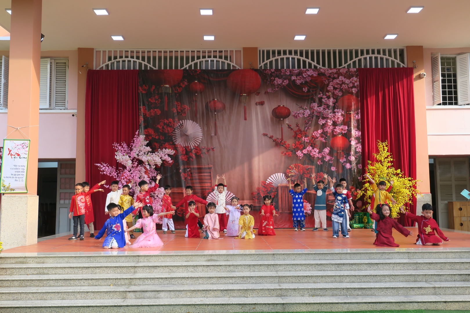Phần chính của Lễ hội Xuân năm nay là "Bữa tiệc" văn nghệ đa sắc màu. Sân khấu bùng nổ tài năng từ các khối lớp. Mỗi tiết mục đều được đầu tư công phu về cả vũ đạo lẫn trang phục. Khối Chồi mở màn sôi động với bản Mashup “Một năm mới bình an – Tết đong đầy”. Khối Mầm mang đến nét đáng yêu qua điệu múa “Bánh chưng bánh tét - Bao lì xì đỏ”. Khối Nhà trẻ gây xúc động với những động tác ngây thơ trong bài múa “Xuân ơi ở lại chơi”. Khối Lá thể hiện sự tự tin, năng động qua Mashup “Đón xuân – Em chào tết”. Đỉnh cao là tập thể Giáo viên tươi tắn xinh đẹp gửi gắm lời chúc tốt lành qua bài múa chuyên nghiệp “Vạn sự như ý”.