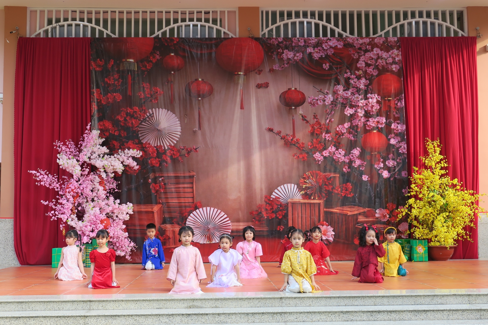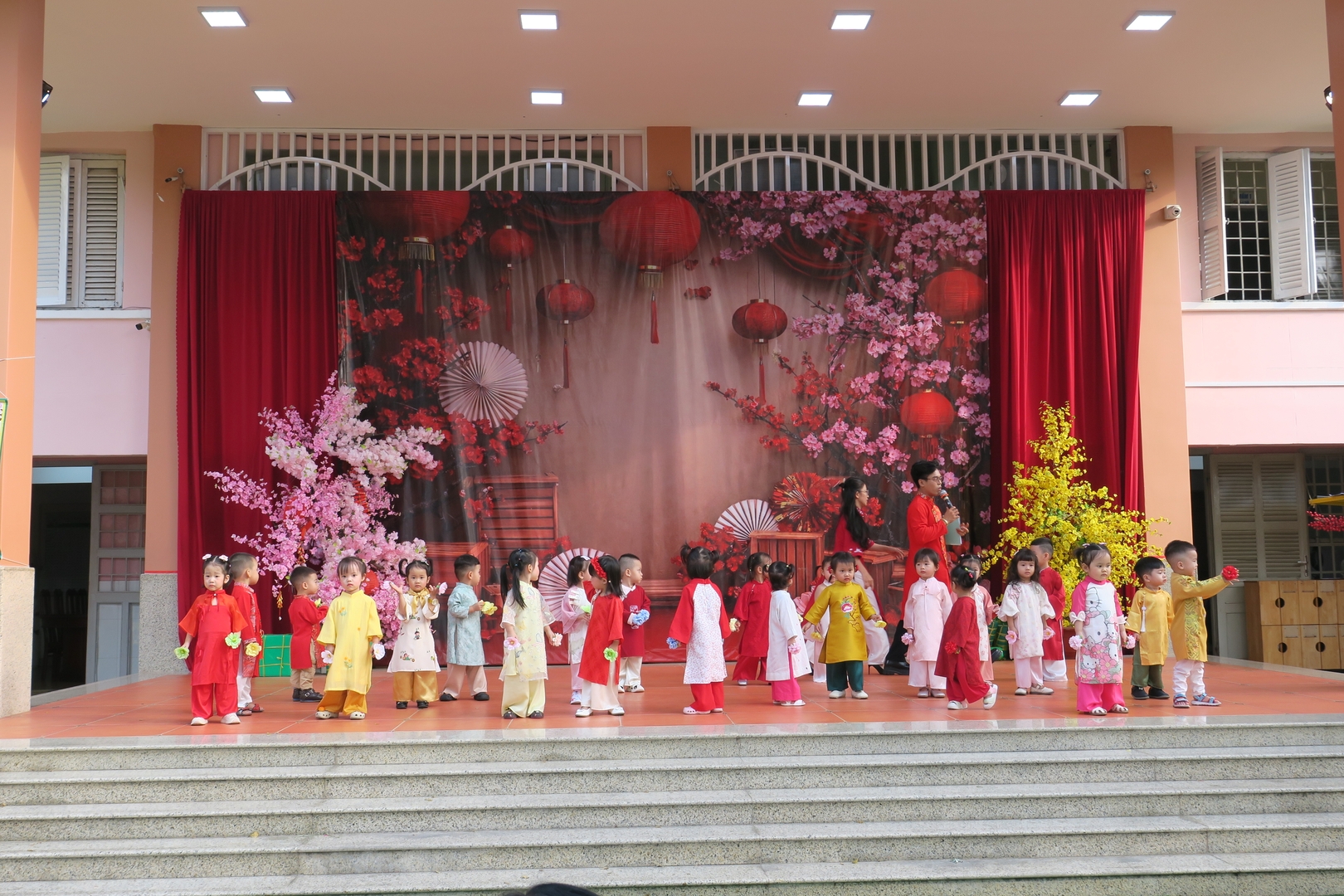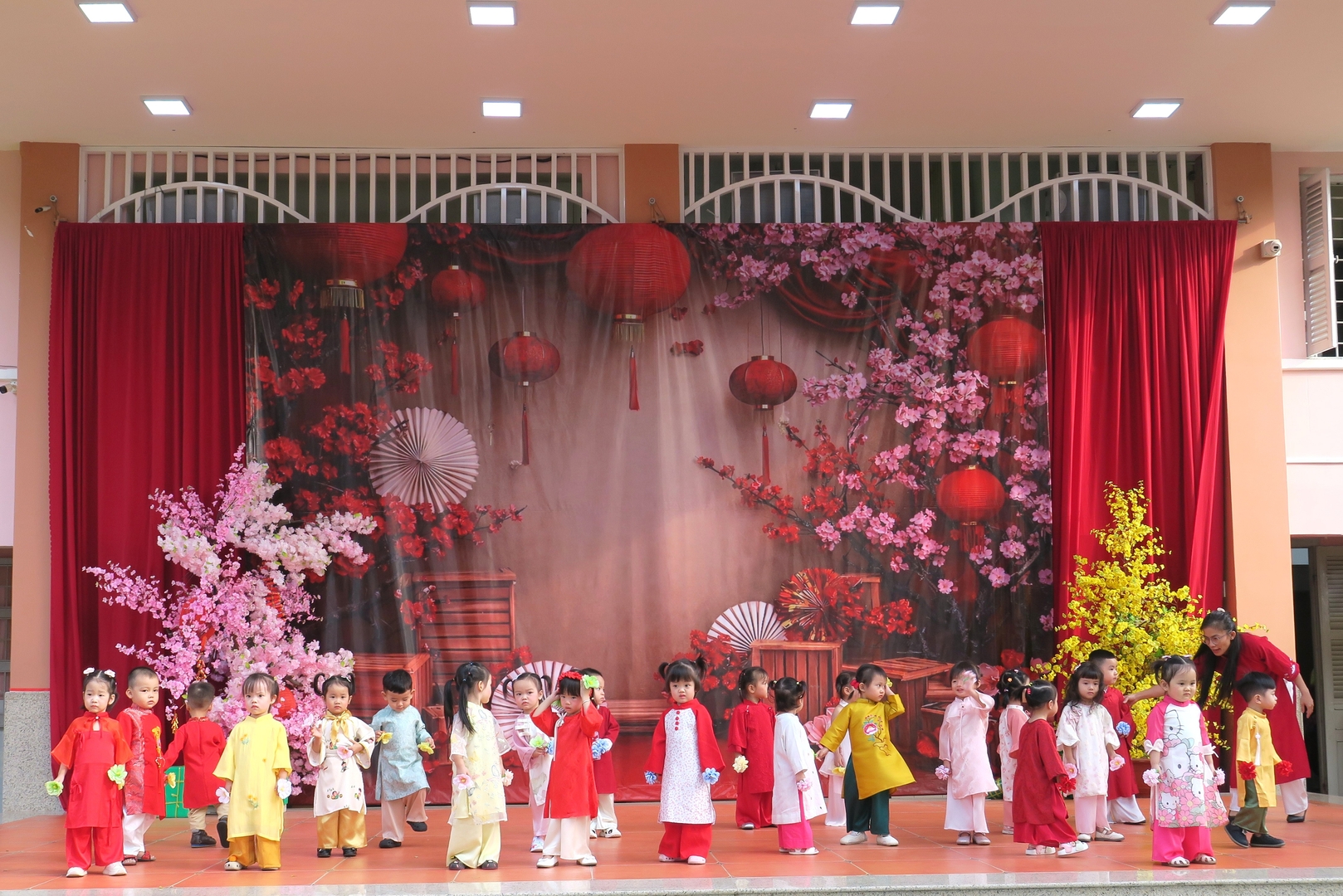 Phần chính của Lễ hội Xuân năm nay là "Bữa tiệc" văn nghệ đa sắc màu. Sân khấu bùng nổ tài năng từ các khối lớp. Mỗi tiết mục đều được đầu tư công phu về cả vũ đạo lẫn trang phục. Khối Chồi mở màn sôi động với bản Mashup “Một năm mới bình an – Tết đong đầy”. Khối Mầm mang đến nét đáng yêu qua điệu múa “Bánh chưng bánh tét - Bao lì xì đỏ”. Khối Nhà trẻ gây xúc động với những động tác ngây thơ trong bài múa “Xuân ơi ở lại chơi”. Khối Lá thể hiện sự tự tin, năng động qua Mashup “Đón xuân – Em chào tết”. Đỉnh cao là tập thể Giáo viên tươi tắn xinh đẹp gửi gắm lời chúc tốt lành qua bài múa chuyên nghiệp “Vạn sự như ý”.