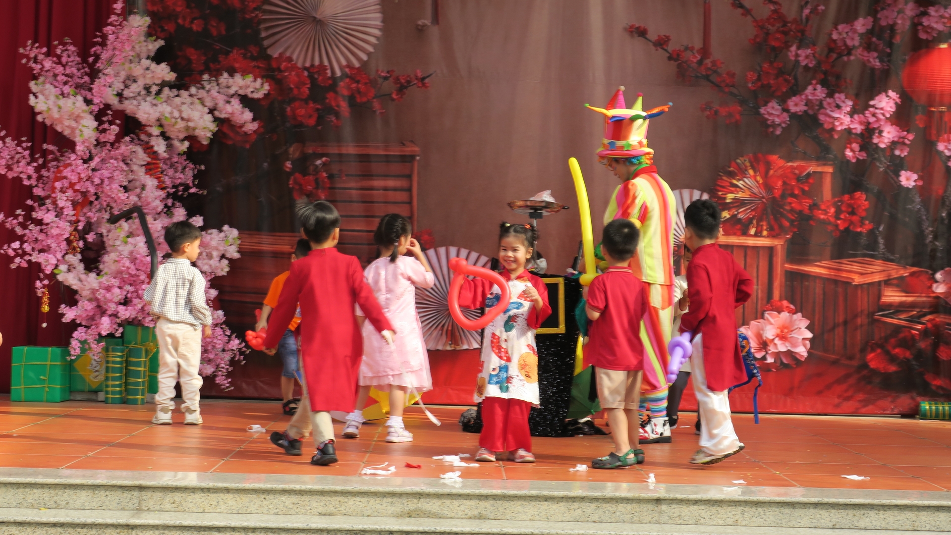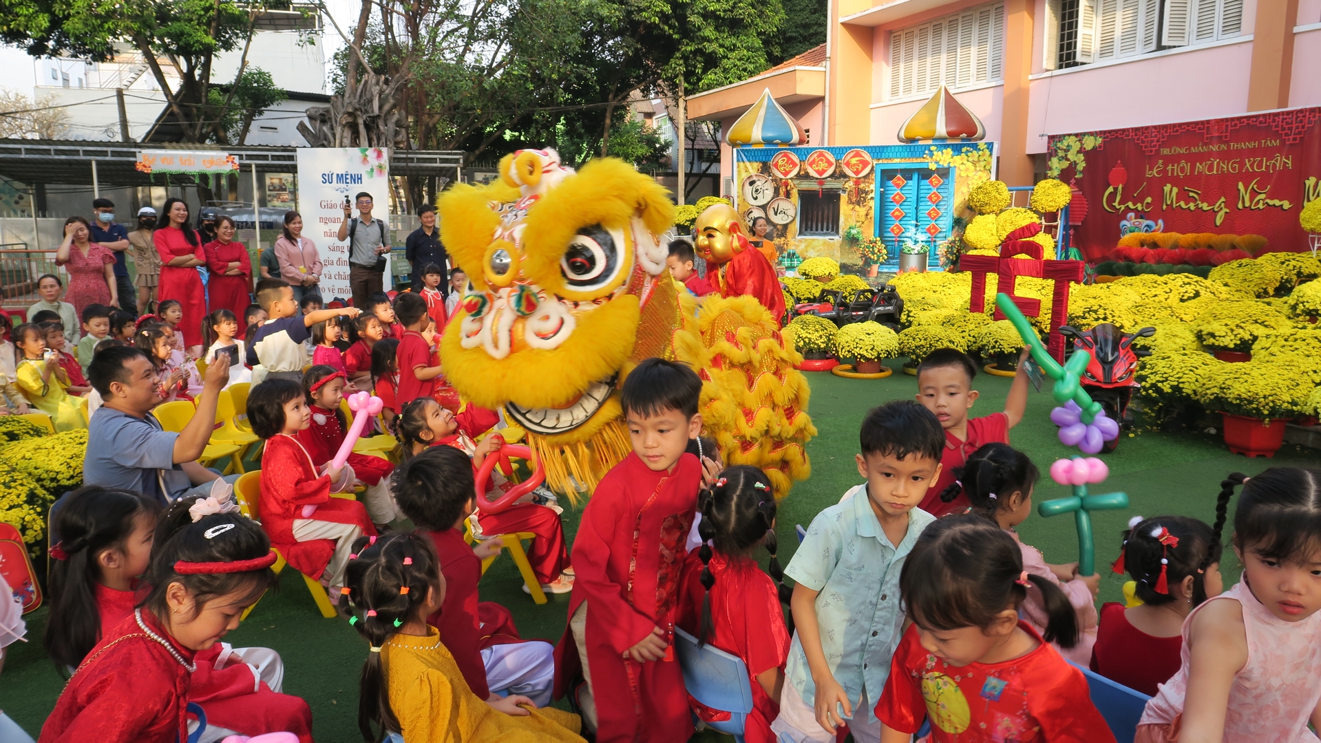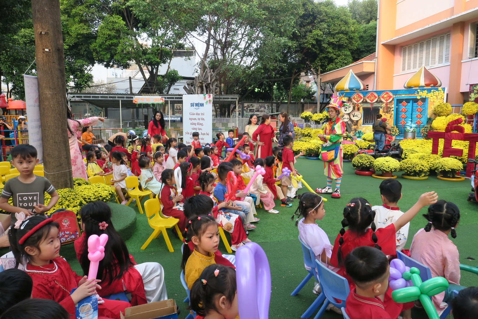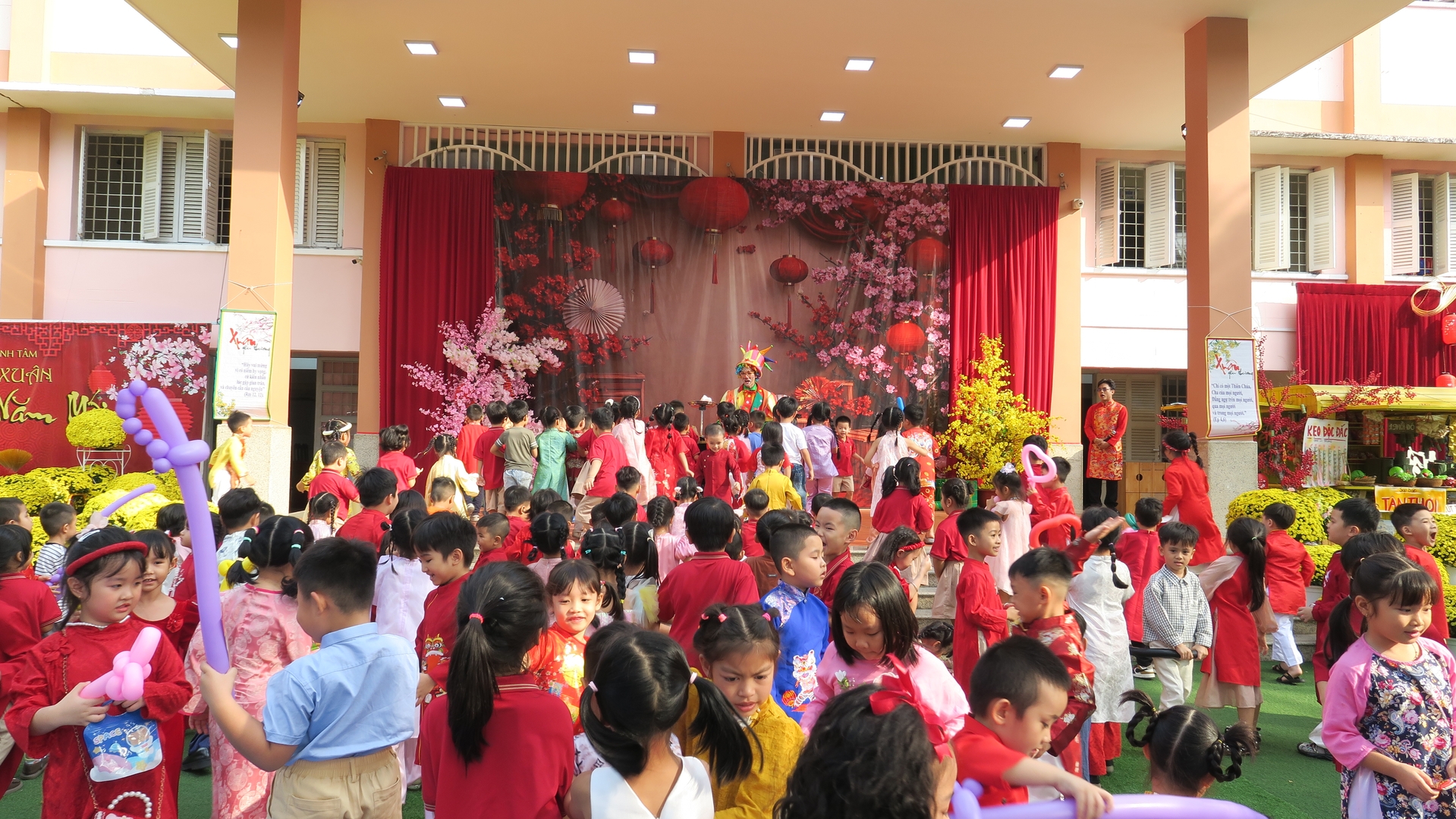 Phần chính của Lễ hội Xuân năm nay là "Bữa tiệc" văn nghệ đa sắc màu. Sân khấu bùng nổ tài năng từ các khối lớp. Mỗi tiết mục đều được đầu tư công phu về cả vũ đạo lẫn trang phục. Khối Chồi mở màn sôi động với bản Mashup “Một năm mới bình an – Tết đong đầy”. Khối Mầm mang đến nét đáng yêu qua điệu múa “Bánh chưng bánh tét - Bao lì xì đỏ”. Khối Nhà trẻ gây xúc động với những động tác ngây thơ trong bài múa “Xuân ơi ở lại chơi”. Khối Lá thể hiện sự tự tin, năng động qua Mashup “Đón xuân – Em chào tết”. Đỉnh cao là tập thể Giáo viên tươi tắn xinh đẹp gửi gắm lời chúc tốt lành qua bài múa chuyên nghiệp “Vạn sự như ý”.